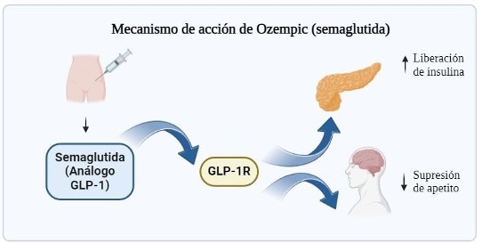 Ozempic es un medicamento que contiene el principio activo semaglutida y que se utiliza para tratar a pacientes con diabetes tipo 2, especialmente aquellos que no pueden usar metformina o no pueden controlar su glucemia (1, 2). Ozempic no solo ha sido aprobado por la FDA (Administración de Alimentos y Medicamentos de Estados Unidos), sino también por la EMA (Agencia Europea de Medicamentos) en 2017. El éxito de este medicamento se debe en gran medida a su capacidad para imitar la acción de la hormona GLP-1, que juega un papel crucial en la regulación del apetito y la insulina (3).